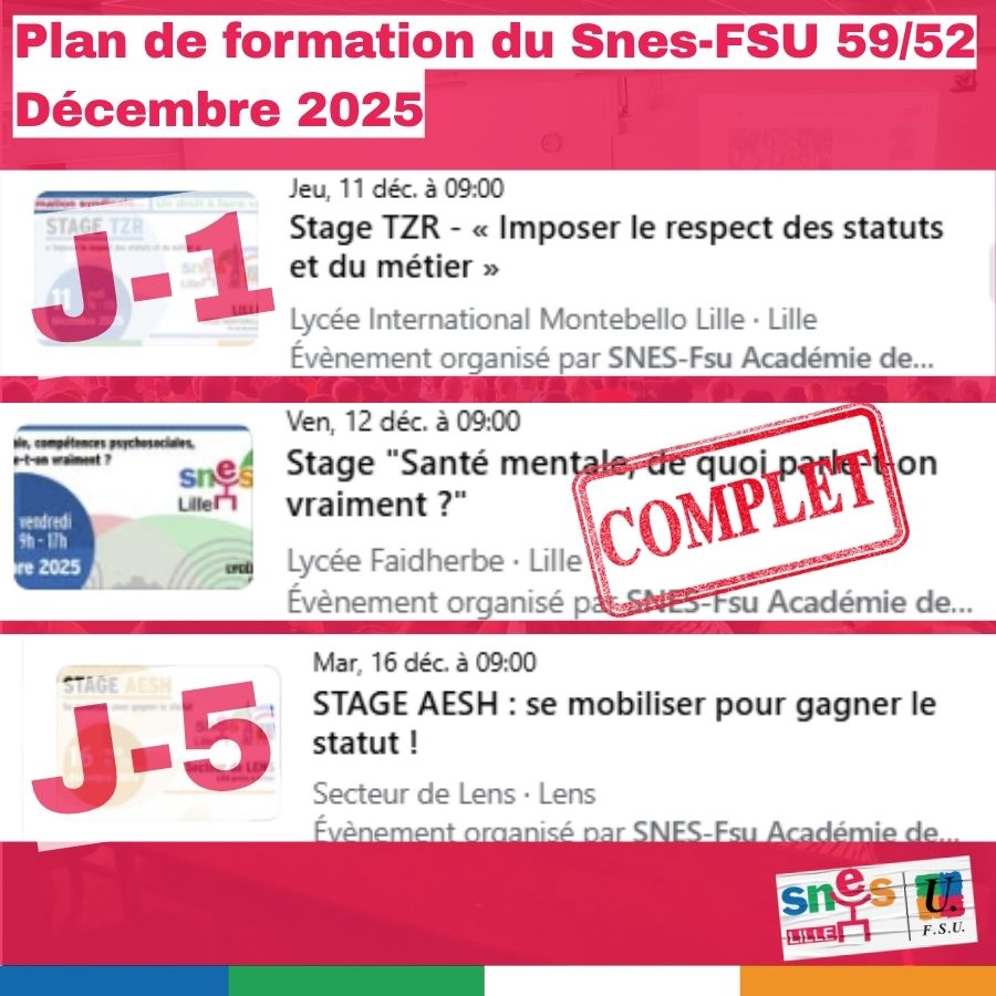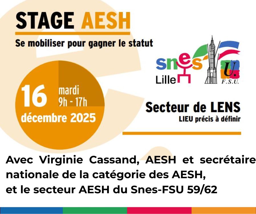 16/12 : temps fort AESH Snes-FSU : stage AESH au lycée Condorcet de Lens