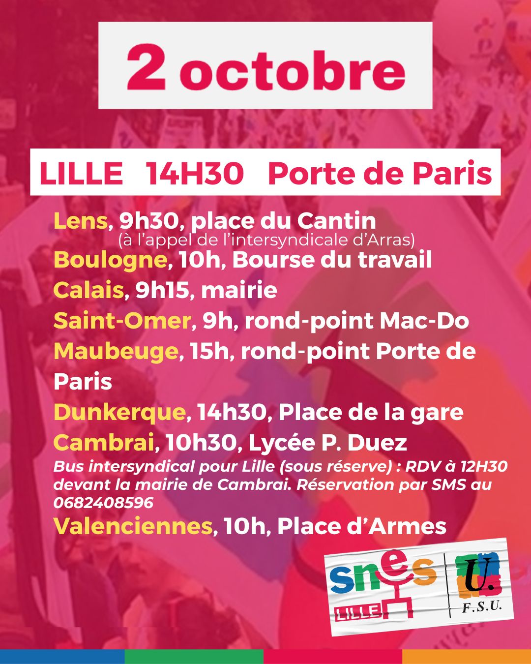 Vous êtes ici : Accueil Actualité Aucune réponse concrète aux attentes du monde du travail : l’intersyndicale appelle à une mobilisation massive le 2 octobre ! 25 septembre 2025 Actualité Aucune réponse concrète aux attentes du monde du travail : l’intersyndicale appelle à une mobilisation massive le 2 octobre ! Imprimer l'article Les rendez-vous dans le Nord et le Pas-de-Calais Communiqué intersyndical de la CGT, CFDT, FO, CFE-CGC, CFTC, UNSA, FSU et Solidaires