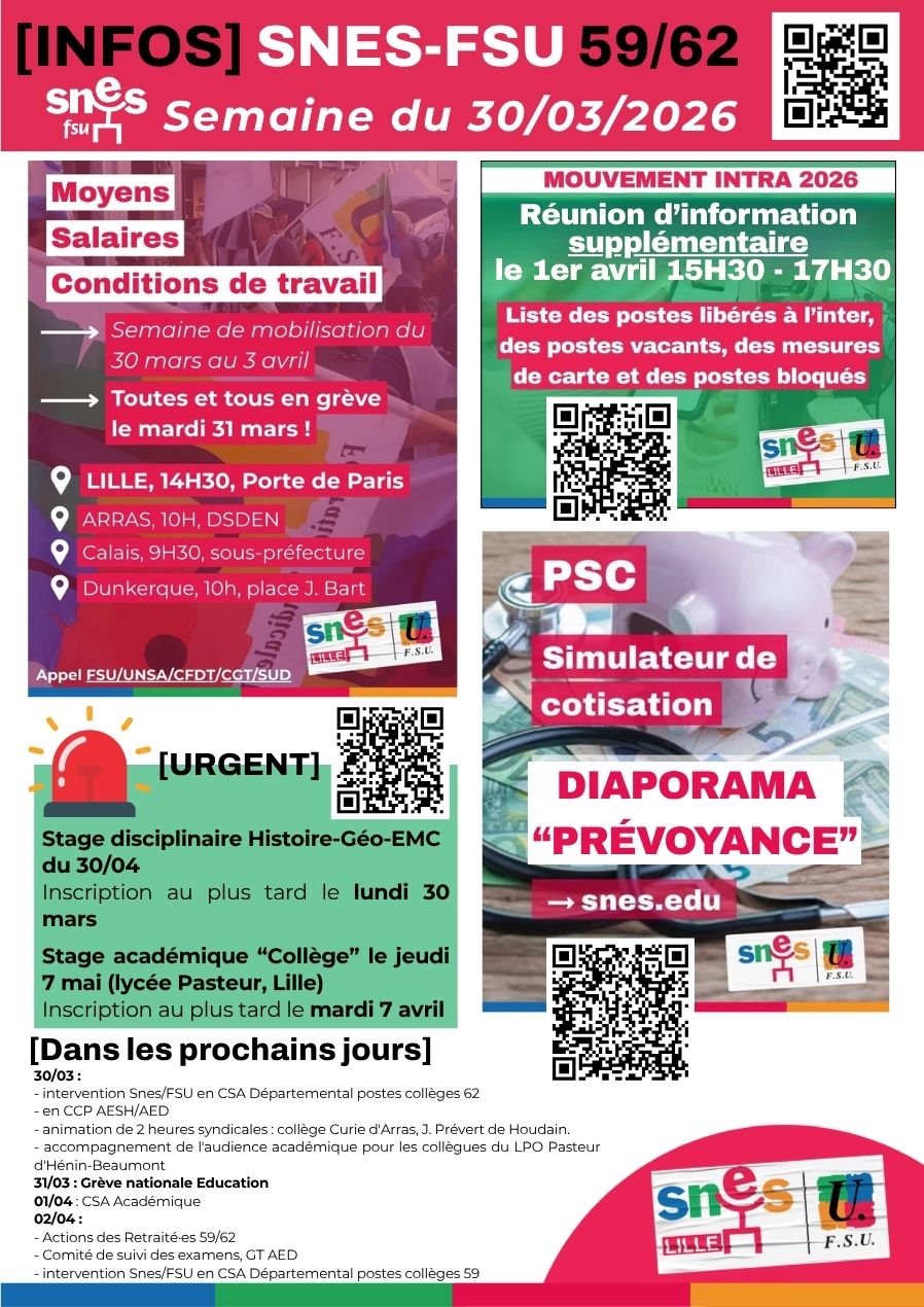 – animation d’une heure syndicale au collège de Nœux-les-Mines